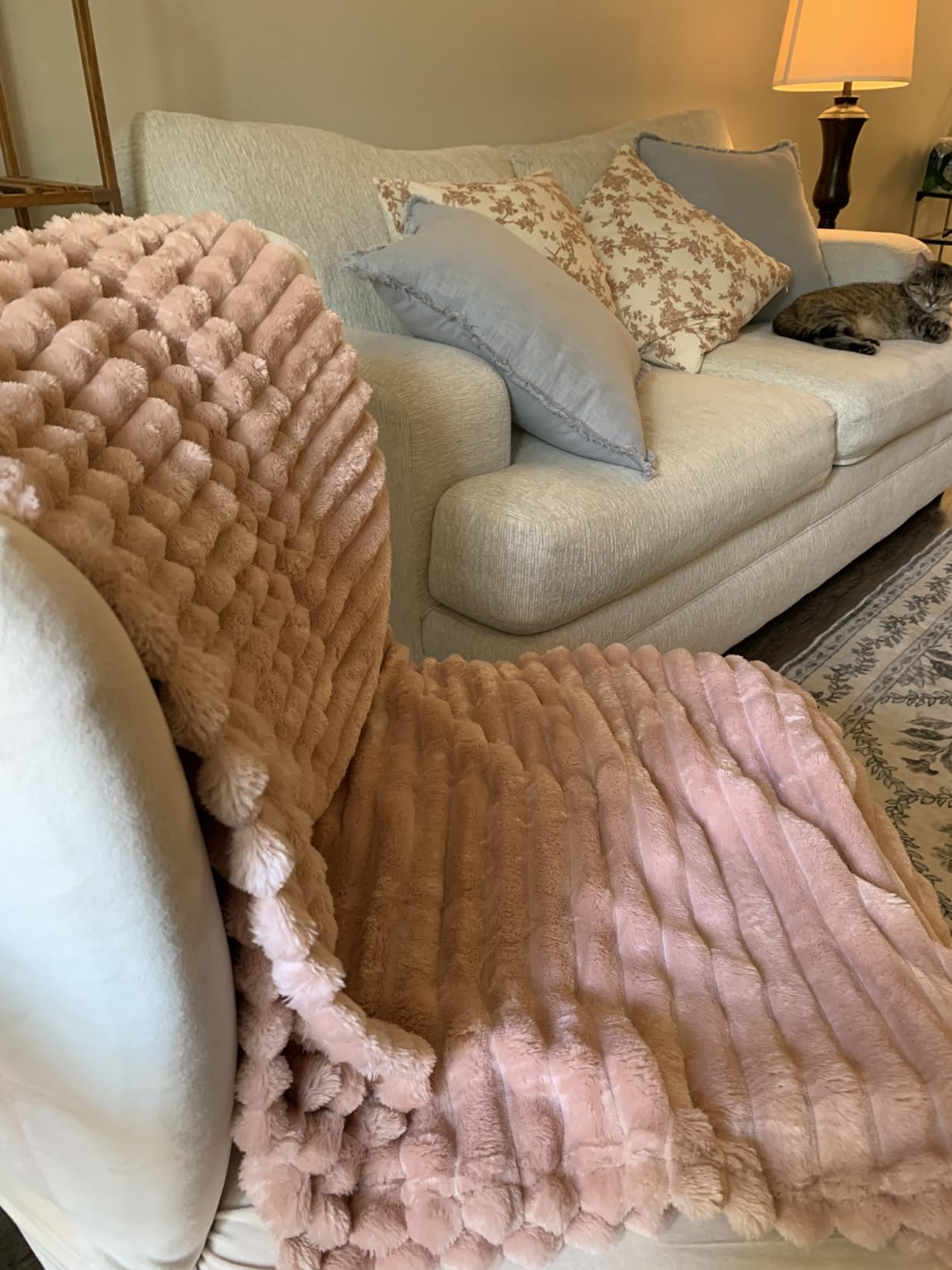 • This blanket exceeded my expectations. It’s plush, doesn’t shed, and feels like a hug at the end of the day.